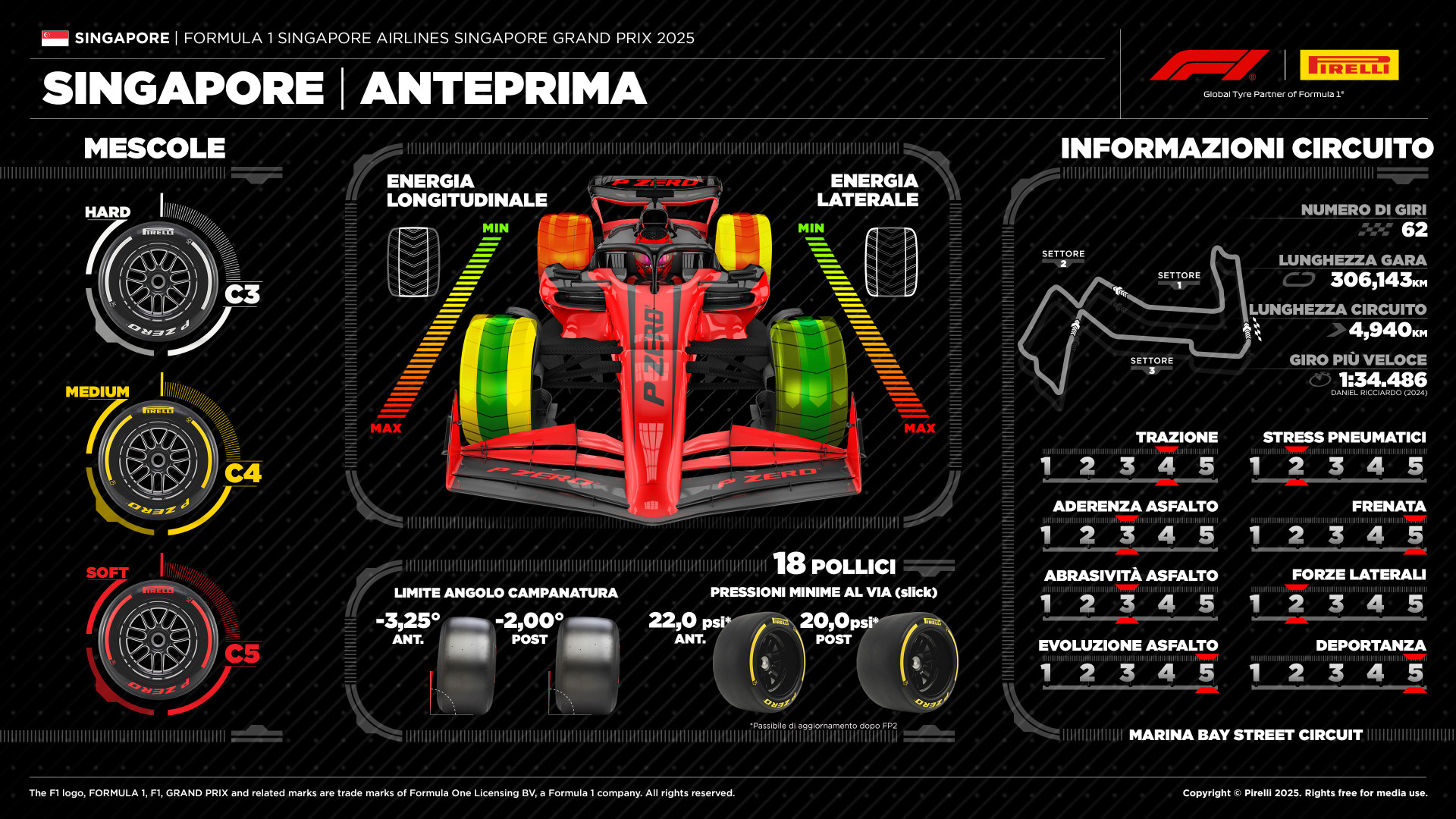 La Formula 1 vola per l’ultima volta nel continente asiatica alla volta di Marina Bay, sede dello spettacolare GP Singapore. La 18a tappa del Mondiale 2025 si riporterà sul primo circuito cittadino notturno della storia dello sport, che ospitò la sua gara inaugurale nel 2008 in un Gran Premio ricco di colpi di scena e di polemiche (per il Crashgate soprattutto) e da allora la tappa dello stato sud-est asiatico è rimasto in calendario regalando grandi momenti nella storia recente. Il circuito misura poco meno di 5 chilometri nella sua ultima versione e, nonostante i tanti rettilinei e zone DRS per cercare il sorpasso, richede comunque grandissima attenzione da parte dei piloti ad evitare le barriere.