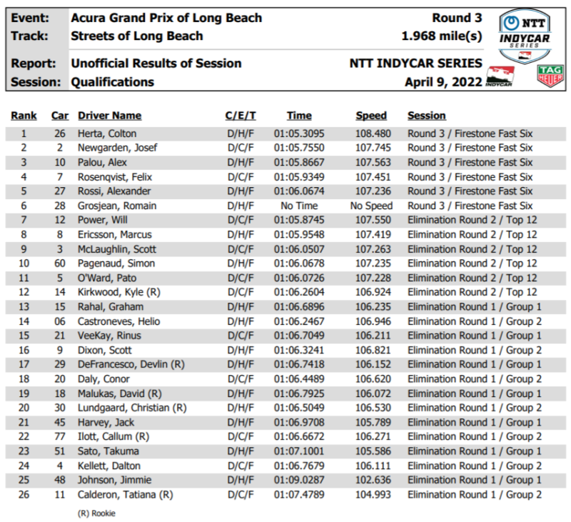NTT INDYCAR SERIES | GP LONG BEACH 2022 | RISULTATI QUALIFICHE