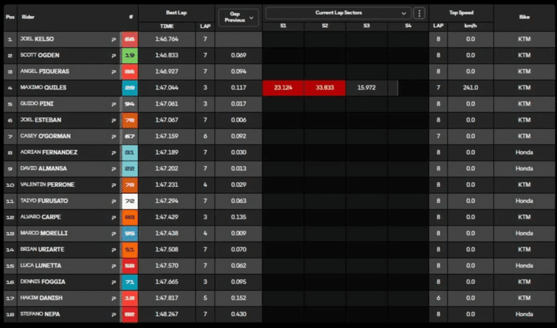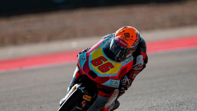 Sabato da incorniciare per Joel Kelso (LEVELUP-MTA) a Portimao: l’australiano è riuscito a conquistare una fantastica pole position precedendo di pochi millesimi un sorprendente Scott Ogden (CIP Green Power). Chiude la prima fila un ottimo Angel Piqueras (FRINSA – MT Helmets – MSI). Quiles chiude quarto, nonostante una caduta in curva 13, seguono Guido Pini (LIQUI MOLY Dynavolt Intact GP), miglior italiano in pista e Joel Esteban, a chiudere la seconda fila: un ottima base di partenza per costruire un gara al vertice domani.