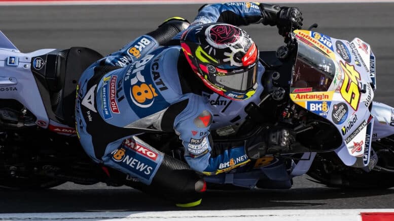 Giornata da incorniciare per Fermin Aldeguer che vince il Gran Premio Pertamina d’Indonesia con un distacco consistente e una leadership incontrastata. Il pilota spagnolo del team BK8 Gresini Racing ha approfittato dell’assenza di due grandi favoriti per la vittoria: Marco Bezzecchi e Marc Marquez, a contatto al primo giro con l’italiano a colpire il posteriore del neo Campione del Mondo, a cui poco dopo è stata diagnosticata una frattura alla spalla destra. Terzo sul podio Alex Marquez, a completare la festa in casa Gresini.